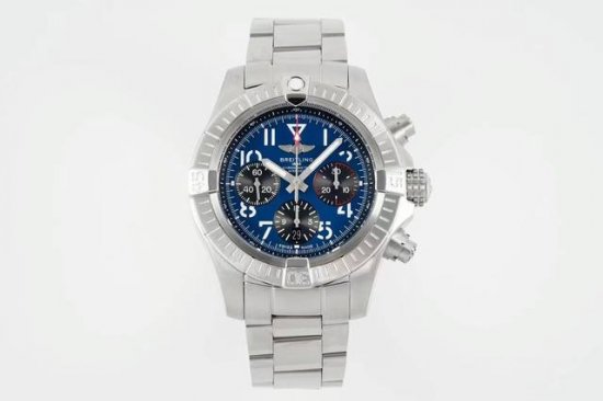 原版开模顶级复刻硬核登场 Avenger B01 Chronograph 45 直径大气的45Mm精钢表壳配以炭黑色,蓝色和玫瑰金色表盘稳定7750改百年灵自制01透底机芯超强阿拉伯时标涂覆夜光涂层镜面蓝宝石基本上再升级双面镀蓝膜复杂工艺提升腕表质感特殊设计的防滑花纹表冠和计时按钮作为一款真正的百年灵复仇者系列 Avenger 表款,为航空探险家提供无与伦比的安全性和可靠性,硬汉必备神器,全球限量发行