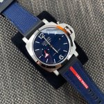 新品沛纳海 pam1404限量款!这款表盘40Mm不会太大再合适不过了,可以说是一款女款都可以佩戴的强悍风格的腕表。崭新超薄 儒雅绅士之选 面盘独特蓝色磨砂,彰显腕上柔情,镂空数字,清晰鲜明。海蓝色主调给人焕然一新,如果您既要沛纳海硬朗大气,又要儒雅大方,具备与原装一致功能的Op定制版机芯!时针单独快调,日历通过时针带动调节,日历可逆调,比如不留心把你要的16号调到17号别担心可以倒回来,这款机芯支持回调功能。定制版p10Xxx机芯!摆轮位置摆轮砝码,无论外观内在都和正品一致!进口十字纹牛皮表带,表壳表扣