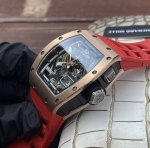 / 理查德 米勒 Richardmille Rm 1系列 全自动机械机芯 40X50X16Mm 蓝光镜面 独特镂空表盘 夜光表盘指针 橡胶或尼龙表带 折叠扣 循规蹈