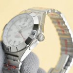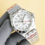 百年灵机械计时系列A32398101M1A1! Conomat Automatic T 40 重磅来袭! Ddd 1这款双时区腕表盘面简洁凌厉,读时清晰。黑色,蓝色,绿色,白色,烟煤灰,蓝间黄六种盘面色彩选择,款款让人爱不释手! Ddd 2表壳采用精钢制成,配备带有双密封垫的旋入式表冠,优良防水性能。精钢表圈单向旋转,装饰标志性的15分钟“骑马钉”! Ddd 3钢带为备受关注的蝴蝶扣辊珠精钢表链因其类似“子弹”的外型被称为“子弹链”。 Ddd 4表壳尺寸为40毫米,适合亚洲跟中国男士手腕! Ddd 5机芯