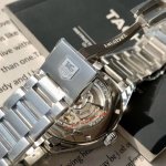 / 泰格豪雅卡莱拉系列双日历款,原单!41Mm直径,钢带款!!蓝宝石防弦玻璃,瑞士原装Sw220机械机芯,透底设计,表壳打磨抛光精细,菱角分明,精细拉砂表带,双按扣