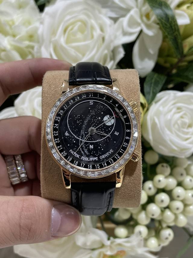 客自来表定制18K包金莫桑钻版p p7940星空 Cnc后做圈口 镶嵌双排D色T方莫桑钻 44Mm表径 机芯18K包玫瑰金 真金厚包金 包金改善普遍白金 玫瑰金