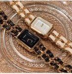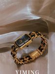 Chanel 香奈儿“黑方糖” premiere系列 其灵感来源于N5香水的瓶盖与巴黎芳登广场的广角形轮廓直径20X26Mm!精钢与黑色皮革交织而成的链带显示出独特的设计感与美感!