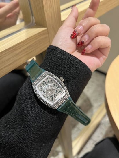 法兰克穆勒Franck Muller 新款酒桶方型Master Square系列女士腕表,众多网红同款,电镀白金,手工镶嵌工艺,进口石英机芯,搭配牛皮表带。尺寸