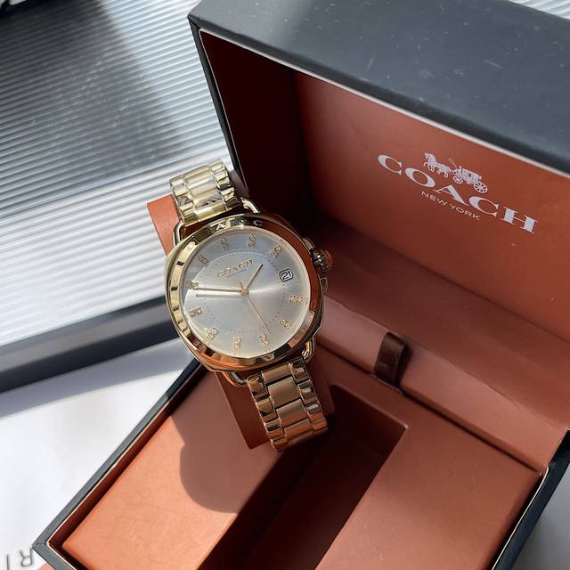 原单 新款蔻驰批Coach Tatum系列.多边形表盘与表圈蚀刻Coach品牌标识 型号 1 4157.尺寸 34Mm 进口石英机芯 带按钮蝴蝶扣 简洁大方 高
