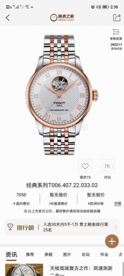 / 天梭力洛克 T006.407.22.033.02经典镂空系列 动力C07.111机芯 防水30米 pvd真空电镀 蓝宝石玻璃 表带蝴蝶扣 中心孔圆润 简单经典款