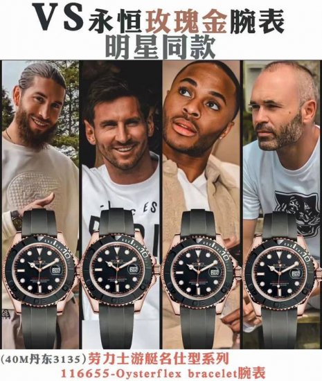 Vs 2025 梅西同款Yacht- Master 丹东3135 劳力士游艇名仕40Mm玫瑰金 再现经典 致敬经典 双向旋转60分钟刻度外圈 配哑光黑色陶瓷字圈 双重防反光小窗凸透镜放大日历 抗刮损蓝水晶玻璃 都是顶级的配置 选Vs 准没错