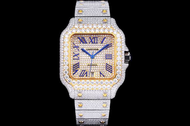 全新卡地亚山度士满天星震撼来袭!整表夏天的炎热气势,多姿多彩采 五彩缤纷 采用多种钻石颜色镶嵌 所有字面所有钻石颜色都可以随意搭配互换 最特出的就是彩虹钻石 难度极高 极其复杂 机器采用最先进最顶级的的镶嵌工艺,大厂做工细节镶钻效果质量一流 看实物为准。