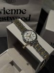 土星石英女表 ,圆形表盘 血统地道。表底花纹带有一丝神秘感和许多异域风情,金色花纹繁复奢华优雅大气。精钢表带,光滑细致,每一处都彰显着Vivienne对质量无尽的追求,表扣简约设计,印有独特标志,时尚优