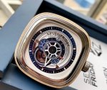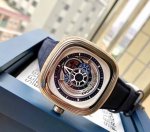 七个星期五 Sevenfriday 新颖设计!木头边框!采用泰国桃木打造!蓝色表盘蓝色真皮表带!型号:Sf-B 026Bullrush Really 2018。50Piece Limited Edition限量版极品,尺寸:47*47Mm,原装日本西铁城Miyota82S7机械机芯,具有24小时指示表盘,日夜清晰显示支持Nfc防伪!