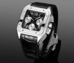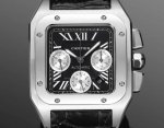 光壳:白 -黑 -黑间玫 钻壳:统一价,2210 Cartier 卡地亚山度士计时腕表系列 ①机芯:采用丹东7550机芯,品质稳定可靠; ②表壳:拥有42毫米的腕表直径,表壳采用了Adlc碳镀层搭配精钢表壳,Adlc碳镀层材质拥有坚固耐用的特质,精钢表壳侧面经过拉丝工艺打磨,凸显出金属特有的光泽和质感; ③表盘:采用了分区设计,中央的方形区域采用了拉丝工艺,三个功能盘装饰有蜗形纹,两者形成了鲜明的对比;经典的罗马数字时标和剑形指针相得益彰,4点钟位置设有日期显示窗口,经典典雅的造型设计给人留下了深刻的印象