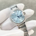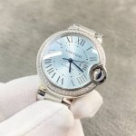 卡地亚蓝气球系列,镶钻款,33Mm直径!冰蓝盘,搭载定制瑞士Eta2671机芯改的卡地亚专用076一档调时间机芯!顶级女款蓝气球!同步官网最新款!开模,用心完美升级!底盖及表扣全部同步!蓝宝石!!东莞厂出品,出货实拍