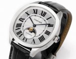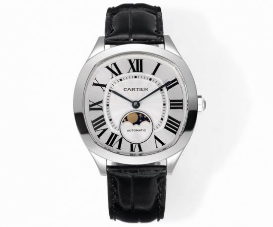 卡地亚Drive De Cartier系列腕表。以典雅肃穆的枕形设计搭配利落大方的线条布局,尽显男儿阳刚不屈的魅力。 表壳 腕表数据40Mmx41Mmx12.5Mm,独特的枕形表壳做工一流,蓝宝石玻璃明朗饱满的弧形线条到位。精益求精,为广大表友还原最接近原版的体验。 技术突破 原厂Cal.1904-Ps Mc机芯,自动陀和大小夹板均有做镀铑处理,摆轮的位置与吻合,仿真度直逼。 精彩细节 1.市场独家购入原装开模 2.淬火烤蓝指针饱满立体 3.表盘的经典钮锁饰纹细腻协调 4.12只罗马标识采用叠加印刷,效果