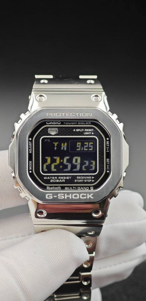 发货实拍,终于出货!小银砖,银色Gmw-B5000D-1Jfb5000 35周年方块钢带表 采用了极为用心的抛光和打磨,显得质感非常高级。经典的G-Shock壳形金属化之后,充满未来感和阳刚之气。配全套包装