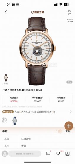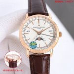 周月轮回,分秒轮转 Km 江诗丹顿 Traditionnelle 传袭系列全日历腕表 型号 :4010T O00R-B344 B740 B345 表壳 :腕表直径41Mm,厚度12.9Mm,阶梯式圆形表壳和表耳、凹槽底盖。经过抛光打磨精修,星现出无与伦比的质感; 表盘 :轨道式分钟刻度園以及太妃式时针和分针,保留了江诗丹顿独创的标志性日历显示。星期和月份视窗对称分布于表盘两侧,表盘外围的数宇表圈为日历显示.由一根优雅的黑色月牙指针轻轻托起,方便读取。巧思的设计打破表盘的沉闷感.这一布局清晰地展现了 6点位