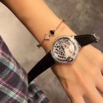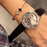 实拍卡地亚手表蓝气球Ballon Bleu豹子系列腕表双排钻亮黑色鳄鱼纹牛皮豹子镶嵌钻面瑞士石英机芯 百搭经典尺寸36Mm奢华极致值得拥有[机智] 12色皮可选
