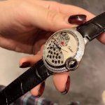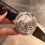 实拍卡地亚手表蓝气球Ballon Bleu豹子系列腕表双排钻亮黑色鳄鱼纹牛皮豹子镶嵌钻面瑞士石英机芯 百搭经典尺寸36Mm奢华极致值得拥有[机智] 12色皮可选@认准独家底盖细节高品质 !