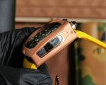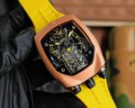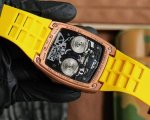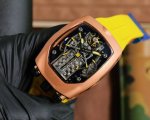 布加迪威龙联合Jacob&Co 捷克豹 推出 Tourbi Llon腕表 腕表尺寸54X44X20毫米与原装一致 整只表由578个零件组成,机械感爆炸 精彩细节 内置16缸发动机,手表设计灵感是取自布加迪旗下的Chiron超跑 最大卖点 这款手表设计成马蹄形,还加上了布加迪车标 最让人感到惊讶的是透过蓝宝石水晶制作的曲型镜面你可以看到一个16缸的发动机,和超跑上是一样的发动机,只是Mini版的,透过它的外表,你可以将里面的机械感看得一清二楚 机芯 采用定制版布加迪V16引擎机芯 布加迪Cal.V16