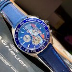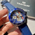 新款高颜值!Tagheuer 泰格豪雅F1系列Gulf特别版石英男士腕表 原单货!六针计时带日历!瑞士原装石英机芯!真皮表带表壳,蓝宝石玻璃!专柜售价一万多!~