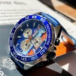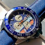 新款高颜值!Tagheuer 泰格豪雅F1系列Gulf特别版石英男士腕表 原单货!六针计时带日历!瑞士原装石英机芯!真皮表带表壳,蓝宝石玻璃!专柜售价一万多!~43Mm表径!配专柜全套包装!