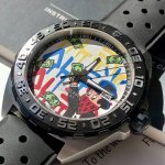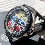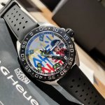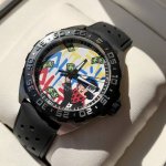 新款Formula 1特别版,石英款!盘面装饰名为Monopi的小银行家形象,他脸上蒙着红色丝巾,手里显眼的腕表、一副夸张的神态,~41Mm的直径,可旋转表圈镶