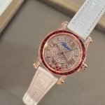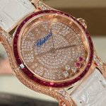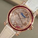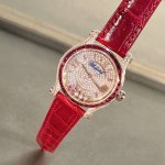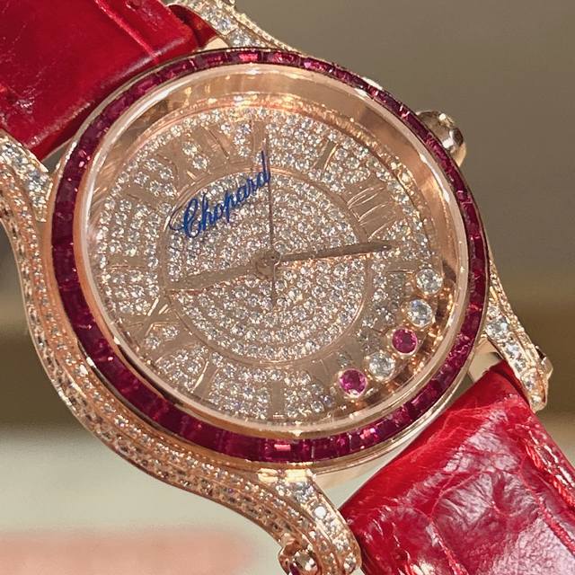 最新款红T满天星 原装搭配美洲鳄鱼表带 搭配原庄进口日本9015机芯 萧邦 Happy Diamonds 作为萧邦最畅销的系列一直以细腻的手法诠释萧邦标志性灵动钻石的概念,此系列作品柔美而时尚,都说男戴万国女戴萧邦 有金 进 有钻 赚 寓意也很好。表盘内的钻石滚珠可自由滑行转动,时来运转 财运滚滚,让每一位女性都以最迷人的造型惊艳世人。 这次给大家带来的萧邦快乐钻系列 是肖邦旗下最具代表性的腕表 最有特色的夹层玻璃的7颗,每一款都配有检测证书,一表一码,7颗钻石产生自旋 犹如舞蹈 在女表上可以说是福音 多