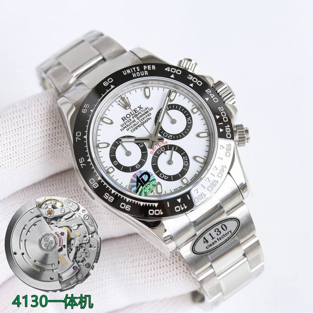 最新版本4130机芯Clean C厂 最强版本,新品,劳力士 Rolex迪通拿系列熊猫迪通拿,最新表壳编号:24R7V713。 使用904L材料 4130机芯 正4130一体机,品质保证 Ar表带 Clean表盘 *死白色*唯一对版 Clean陶瓷圈 Buff工厂P指针 厚度12.2Mm 本次手表的特点 玻璃和表壳衔接的地方 完全透明,看不到任何白边 玻璃边缘弧形跟原装一致 玻璃凸出陶瓷圈高度 跟原装一样 --------- 陶瓷圈使用Clean 字体更加立体圆润 陶瓷圈边缘有轻微圆角 ---------