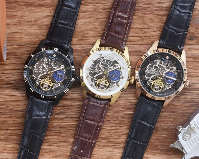百达翡丽 Patek Philippe 精品男士腕表,精雕细琢,雕花外壳 陀飞轮精选,多功能显示 包含日月星辰...