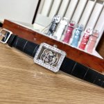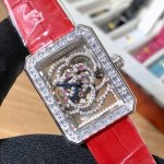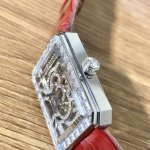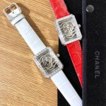 最高奢侈版本!腕表界唯一款长方形把机芯,设计成透明镂空3D立体山茶花,又在立体镂空山茶花机芯上,采用珠宝微镶工艺,用128粒八心八箭的镐石。微镶成3D立体奢侈珠宝山茶花透明机芯腕表!把头采用珠宝工艺,中间包一粒大锆石,外围微镶一圈小锆石。配置:瑞士机芯,上下透明蓝宝石玻璃。有彩色鳄鱼皮和意大利队小牛皮开关生耳表带选择! 香奈儿PremièRe代表了香奈儿最原始的腕表传统,山茶花则是香奈儿精神的象征。无论时装还是珠宝腕表,在香奈儿的世界,山茶花的元素无处不在。可可 香奈儿钟爱山茶花,又在立体山茶花机芯上因为