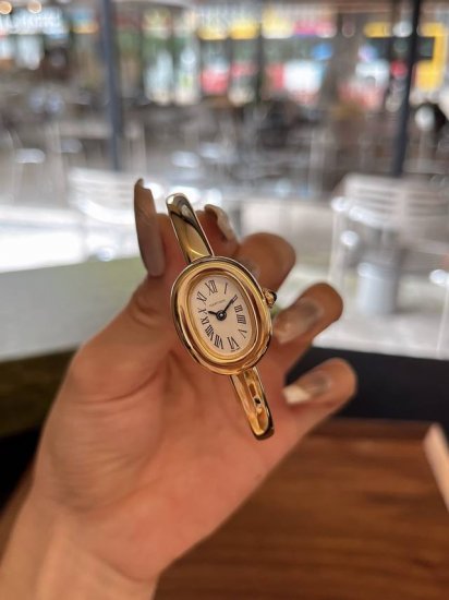 玫瑰金 黄金 两色手围16 长24.6 宽18.7 厚7.5 ,升级手环链接处市场唯一不漏缝隙。外观手环形态跟官方一比一,市场唯一一家能做到跟官方一致。 新款浴缸手镯表,卡家经典之作浴缸系列。 Baignoire 全新“浴缸”手镯腕表,Mini表壳 手围尺寸16Mm 细节非市场冒充厂粗糙做工 手镯围度做得真的是超超超好!小巧别致叉夺人眼球,时髦中更透露一丝奢华,实物拿到手的时候大吃一惊,颜值高 !椭圆外型的感觉正是典雅欧风浴缸形状,这也太好看了吧!Baignoire浴缸系列腕表,柔和的线条、表耳以及华贵气