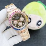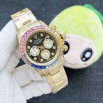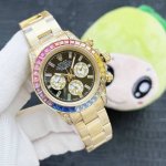 / 白壳 ,金壳420 品牌:劳力士 系列:彩虹迪通拿系列 款式:经典三眼六针设计,大气时尚 表带:316精钢 意大利进口橡胶表带 壳套:316精钢材质制作工匠工艺
