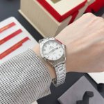 白壳 金色480 钻石圈20 专柜爆款,独家首发! 欧米茄海马系列Aqua Terra女士腕表环镶璀璨美钻,诠释精致迷人风范。 这款精钢腕表采用对称设计34Mm表径,厚度8Mm,非常秀气、精美绝伦!配备有光泽的深海珍珠贝表盘,12枚圆点镀铑小时刻度。指针亦经过镀铑处理,表背于波纹背景之上浮雕欧米茄海马徽章图案。