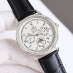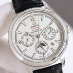 白 金 新品 表壳升级隐藏按键品牌: 欧米茄多功能系列火爆上市 。 款式 :男士自动机械腕表 机芯:进口9100 零故障 表壳:顶级版316L精钢 表带:意大利进口牛皮 表扣:原装针扣 玻璃:法国蓝宝石防刮玻璃 直径:原装尺寸40Mm 功能:日月[月亮]星辰,月份,星期,日期显示。 防水深度:50米防水 游泳可佩戴 亲民品牌,低调奢华,不显浮夸。一旦拥有,别无他求!