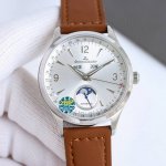 白 金 Tw Factory 积家 Jaeger-Lecoultre 积家 Bj1 推出 Master Calendar日历大师1558420系列腕表!1聘请制表师傅通过两年无数次测试,期间损坏机芯上百个,从星期,月相,到日历,月份,一一还原正品制表特质,以稍作不同的方式展现其隽永魅力! Jl 2积家日历大师1558420系列,腕表十二点位置两个窗口分别显示星期和月份,腕表在6点钟位置的副表盘可读取月相显示,边缘位置则显示时钟! 3腕表前后均采用蓝宝石水晶玻璃! 4皮带采用进口意大利牛皮,表扣则与表壳同材