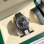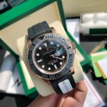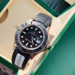 真正意义上的金表来啦!通体包金18K玫瑰金!厚度5Um,谈到劳力士游艇名仕型系列中最受欢迎应该就是116655-Oysterflex Bracelet腕表了,也就是大家俗称的“金游艇”。该腕表的设计十分奢华,采用18K玫瑰金表壳、Cerachrom黑色陶瓷表圈,极具观赏性。表盘直径为40Mm,带有小窗凸透放大日历十分方便读取。品牌专利的Oysterflex表带,内部为弹性钛镍合金片连接至表壳和蚝式保险扣,外层则用高性能黑色橡胶将金属片包覆,优越的质感让佩戴更舒适。劳力士之所以被称为“一劳永逸”,除了抗造和