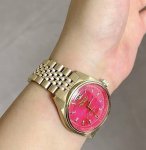 西太后手表我真的超爱 简约又不失精致 表盘是火龙果粉色超吸睛 配上金色的金属表带 好摩登!完全大女主!! 我感觉正式场合或者约会 都少不了一只能撑场面的精致腕表
