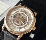 送领导,送老公,送朋友首选!阿玛尼Ar60007玫瑰金镂空透视皮带自动机械表 ! 镂空透视窗,质感指针、利落线条大气跃然于手!玫瑰金表盘搭配小牛皮表带大气又美观