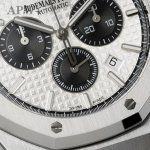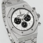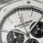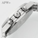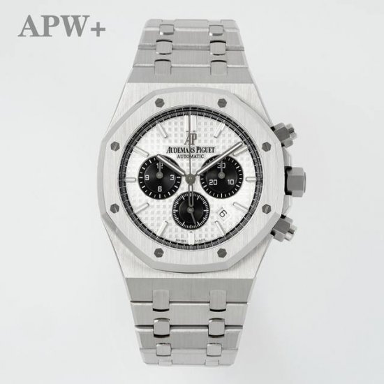 重磅来袭!!!Apw+ 钢王 独家厚度与原装一致版本一爱彼26 R皇家橡树 多功能计时机械腕表41Mmi市场独家一体机 特点1:机芯独家研发功能全部对版原装3位计分6位小秒10位计时 特点2:三眼距离中心轴完全对版原装 特点3:厚度和原版完全一致做到 11Mm!!! 特点4:动力存储42小时 丹东孔雀机芯非常稳定!!! 特点5:表壳表带结构跟足原装正品,装配方式原装一致,镜面和正品一样采用的是蓝宝石双面高透玻璃镜面,和正品放在同一下角度对比,保持一样的通透明亮度,一致的防炫光效果 功能一比一全部还原 三眼