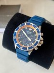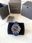 阿玛尼2025太阳能腕表|光能驱动 精准永续 Ar11696 43.5Mm运动表盘|22Mm蓝色运动硅胶表带 银白色表壳搭配可转动蓝色刻度表圈,蓝色放射纹表盘与橙色内影圈迸发活力碰撞。夜光剑形指针与字钉,无惧暗夜,读时清晰。简约钉扣设计,贴合腕部,运动休闲皆宜。 核心突破:原装进口太阳能机芯 以光为源,颠覆传统 无需更换电池,通过日常光照即可自动充电。续航能力达7-12年,寿命超越普通石英机芯7倍。以科技践行环保,精准走时与可持续理念并存。 高效储能 绿色革新 将太阳能转化为持久动能,减少电池废弃,重塑腕