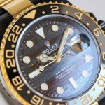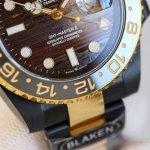 Blaken改装劳力士Gmt-Master Ii|铁虎眼石的致命诱惑,谁能扛得住?! 见过**铁虎眼石 Tiger Iron Eye Stone **表盘吗?纹理如流动的金属虎纹,每一块都是独一无二的天然艺术!给它来个特写,质感直接拉满,戴出去绝对是腕间的焦点C位! 劳力士Gmt-Master Ii双转圈口+独立调节第四针,双时区自由切换,跨国差旅、时区党狂喜! 背透设计直击劳力士Caliber 3285机芯,王牌机芯的精密运转尽收眼底,机械迷直接沦陷! Blaken改装加持,黑金撞色+个性间金黑改装,把