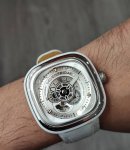 / C 01 配备白色哑光动画环,采用耐磨的可丽耐材料 室内实体表面之神 制成,还配有白色皮革表带,彰显其独立特性。 #Sevenfriday #Sevenfrid