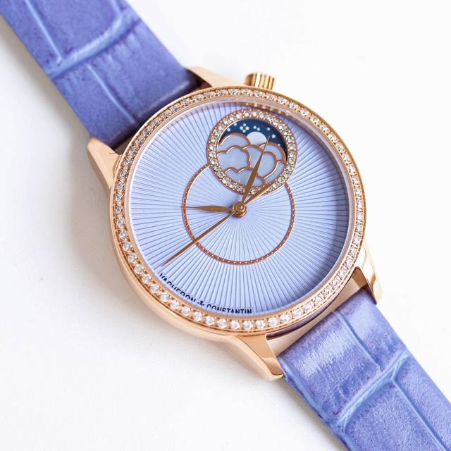 Gr Factory V3升级版 Vc 江诗丹顿 Bj1 EgéRie 伊灵女神系列 再添新作!沉淀时光雅韵,流转日夜芳华。超薄机械女式腕表延续系列风格!全新乳光表盘以璀璨美钻相饰,褶皱纹饰历经数月调试,运用传统的“织锦 Tapestry ”工艺制作而成, 表冠上饰有象征沉稳与静谧的弧形切割月光石,闪耀钻石的偏心式圆形表盘以梦幻般的方式展示时间,精美的珍珠贝母被雕琢成朵朵白云。直径37毫米,搭配进口改1088L自动上链机芯,完美呈现月相日历功能,典雅奢华专为女性鉴赏家倾心打