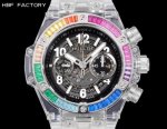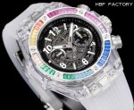 Hbf Factory 恒宝Hublot 宇舶表年度最佳复刻作品 宇舶Big Bang系列411.Jx.4802.Rt“全透明腕表” 精彩细节 1.还原正品表盘后龙飞凤舞的镂空布局,2.采用与原装同样的丙烯酸有机玻璃极致克隆 完成不可能完成的任务。该材质不仅硬度高,且具有抗鑫腐蚀,耐磨损等卓越物理特性。 机芯功能 腕表直径45Mm。采用增强版计时7750机芯改原装Hub.1242型芯,实现所有功能吻合正装。 精益求精 全力以赴,层层把关,在保证完美“透视感官”的同时,竭心尽力还原正品的每个细节。 赠品 附
