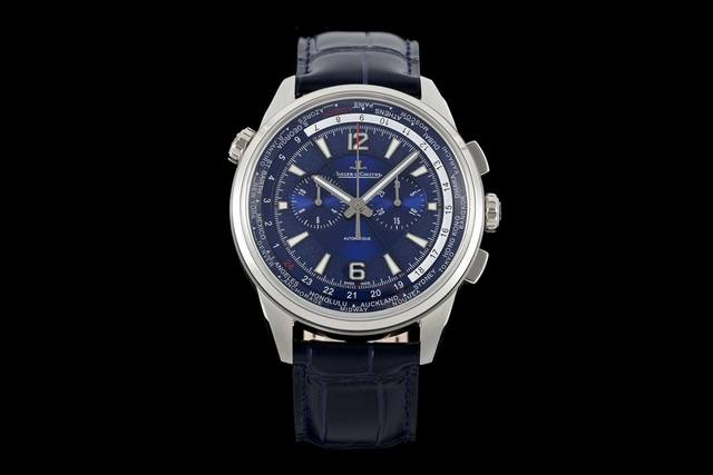 Hk再推爆品 积家 Jl 北宸系列 世界时计时腕表 905T470 数据吻合:腕表尺寸44Mmx12.5Mm大小厚度,全方位同步原版。表盘:盘面的磨砂质感细腻温和,蓝色和黑色色调和正品保持一致。功能:7750改752A型机芯,左侧把头的刻度旋转,实现原装所有功能。Hk出品,必属精品!欢迎广大表友共同体验!精致推荐男士多功能机械腕表