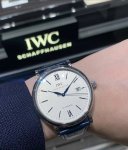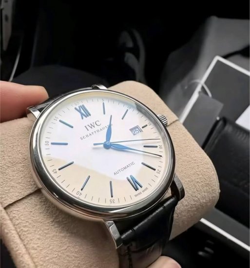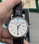 Iwc万国 柏涛菲诺系列 自动机械机芯 大三针,日期显示,简约 男表 瑞表 40Mm 白色表盘 精钢表壳 鳄鱼皮表带