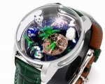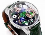 Jacob & Co 』捷克豹 天体艺术陀飞轮熊猫腕表. 生动展现竹林与熊猫的灵动世界,标志性的Astronomia机芯更赋予这款腕表独特的机械美学. 当国宝攀上捷克豹的“天体”世界,原本霸气十足的Astronomia是不是也可爱许多?令人惊叹的艺术与无与伦比的工艺在Astronomia Art Pandas中相遇。每一个手工雕刻和手绘的细节都将这个错综复杂的竹林和熊猫世界栩栩如生。这是我们致力于高级制表,将艺术性和卓越钟表相结合的精彩演绎。 47 Mm 精钢表壳 ,手工制作完成的3D熊猫和竹子雕像 ,双