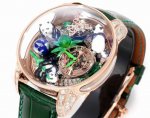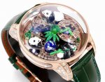 Jacob & Co 』捷克豹 天体艺术陀飞轮熊猫腕表. 生动展现竹林与熊猫的灵动世界,标志性的Astronomia机芯更赋予这款腕表独特的机械美学. 当国宝攀上捷克豹的“天体”世界,原本霸气十足的Astronomia是不是也可爱许多?令人惊叹的艺术与无与伦比的工艺在Astronomia Art Pandas中相遇。每一个手工雕刻和手绘的细节都将这个错综复杂的竹林和熊猫世界栩栩如生。这是我们致力于高级制表,将艺术性和卓越钟表相结合的精彩演绎。 47 Mm 精钢表壳 ,手工制作完成的3D熊猫和竹子雕像 ,双