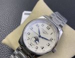 Longines浪琴 名匠系列 自动机械机芯 四针月相 男表 瑞表 40Mm 银色表盘 精钢表壳 精钢表带