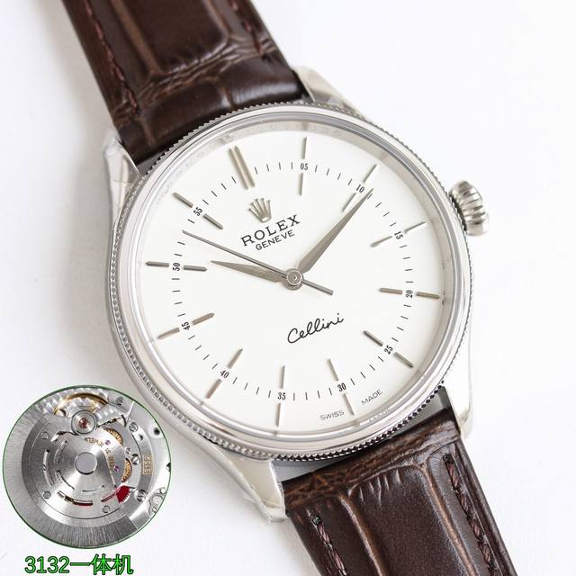 Sj出品 白壳 金壳 Mks V2升级版 原装开模 劳力士 Rolex 切利尼系列 Ot2 经典正装表, 切利尼系列:时间型50505 尺寸 :39*12Mm 机芯 :Rolex 3132一体自动机芯,精准而稳定,大三针、一档无日历 表壳 :进口316L精钢,顶级电镀,切利尼标志性圆拱形三角坑纹外圈 指针 :瑞士顶级批花工艺 镜面 防刮蓝宝石水晶镜面 Air双层无色镀膜 表带 意大利小牛皮表带,质地柔软,佩戴舒适 三角坑纹双外圈,蓝宝石镜面,牛皮表带,针扣,防水50米! 表扣 原装一比一开模 针扣 方便使