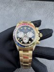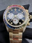 Vr工艺巅峰之作|彩虹圈迪通拿,腕间的色彩皇者 当顶级复刻工艺邂逅自然瑰丽,便诞生了这枚堪称迪通拿系列 天花板 的Vr彩虹圈腕表,重新定义复刻表的优雅与极致。 彩虹迪通拿的灵魂,藏于那圈惊艳时光的渐变宝石外圈。天然宝石本就 十宝九瑕 ,Vr以近乎苛刻的标准,先对每一颗宝石进行专业优化处理,赋予其纯净透亮、色泽浓郁的顶级质感。更在数以万计的原石中反复甄选、精准配伍,最终敲定36颗色彩过渡浑然天成的宝石,成就圈口上流动的彩虹盛宴。 而真正的 复刻硬实力 ,在于其量产难度的突破。作为小规模量产款,它所需的绝非一